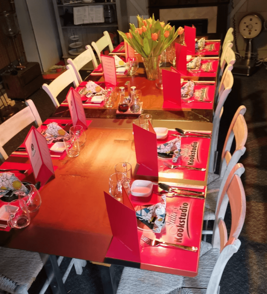 Met je eigen gezelschap tot max 22 personen gezellig tafelen in Julia’s restaurant.